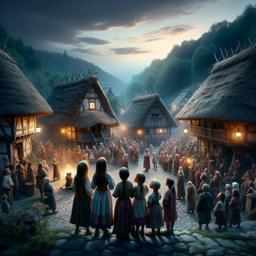 In the village below, people of all ages gathered in the square, their eyes wide with wonder as they listened to the celestial chorus.