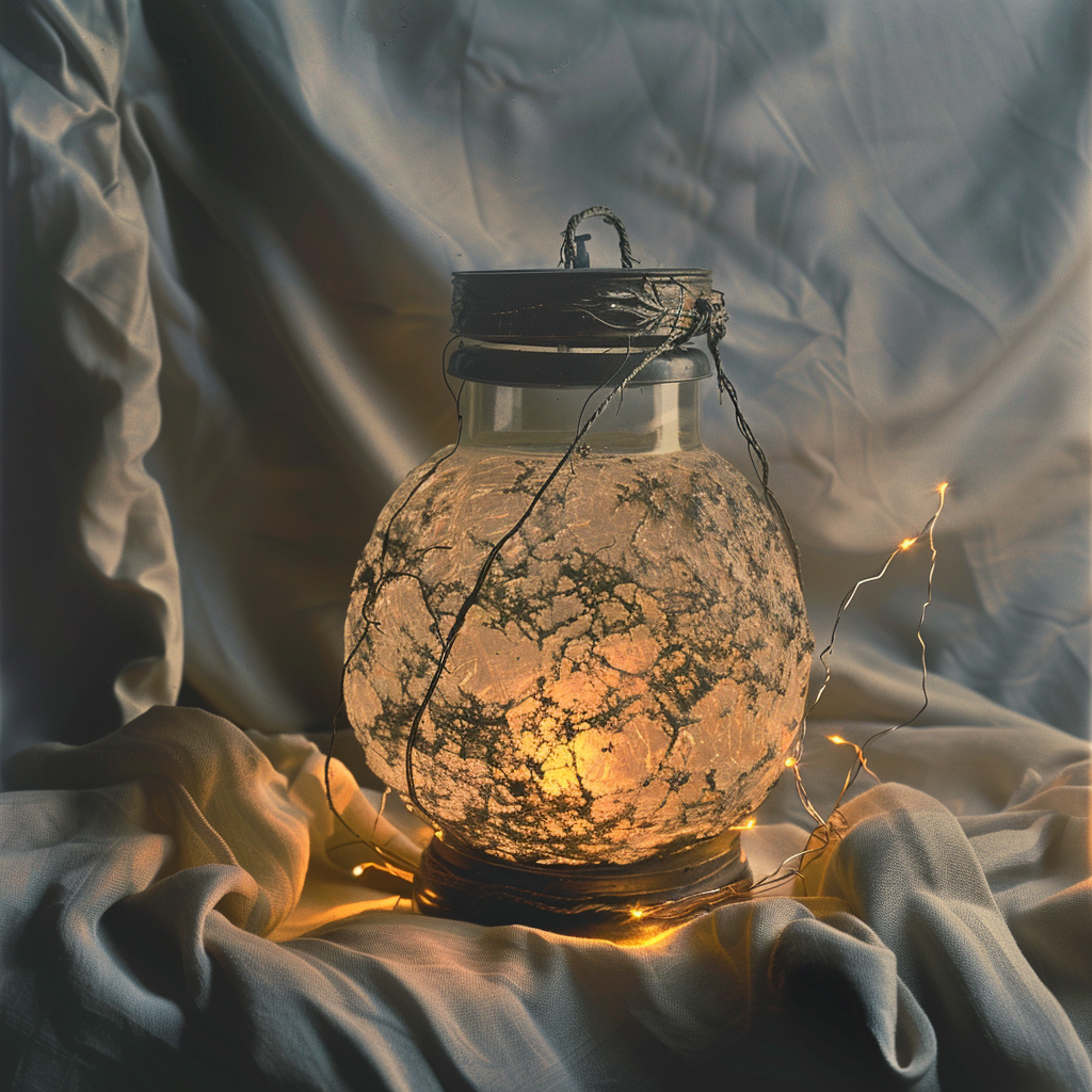 https://s.mj.run/vZ-aZ18KD9E This is a monochromatic image that displays a study in textures and forms through a carefully arranged still life. The composition includes a round, textured object that resembles a stone, resting atop a folded fabric with undulating peaks and valleys. Where previously there was a ceramic pitcher, now imagine in its place a camping lantern. This lantern, likely made of metal with glass panes, would reflect light differently than the ceramic, offering a functional contrast to the organic shape of the stone. Its design might be practical and sturdy, meant for outdoor use, adding a modern, adventurous element to the otherwise serene and classic still life setup. The fabric’s folds create a dynamic landscape for the items, and the monochromatic palette emphasizes the interplay of light and shadow, which would be particularly pronounced around the lantern's reflective surfaces. --v 6.0 --style raw --s 250
