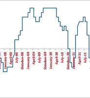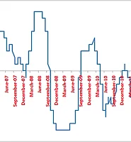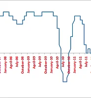 April 2005 to February 2014 correlation coefficient is 0.46.